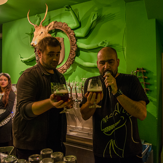 Ceremoniju su vodili Domagoj Jakopović Ribafish (desno, pivski sommelier i posvuduša) i Marko Ožegović (lijevo, admin na stranici za recenzije i ostale informacije o pivu, RateBeer). Točio se Porterhouse Red Ale.