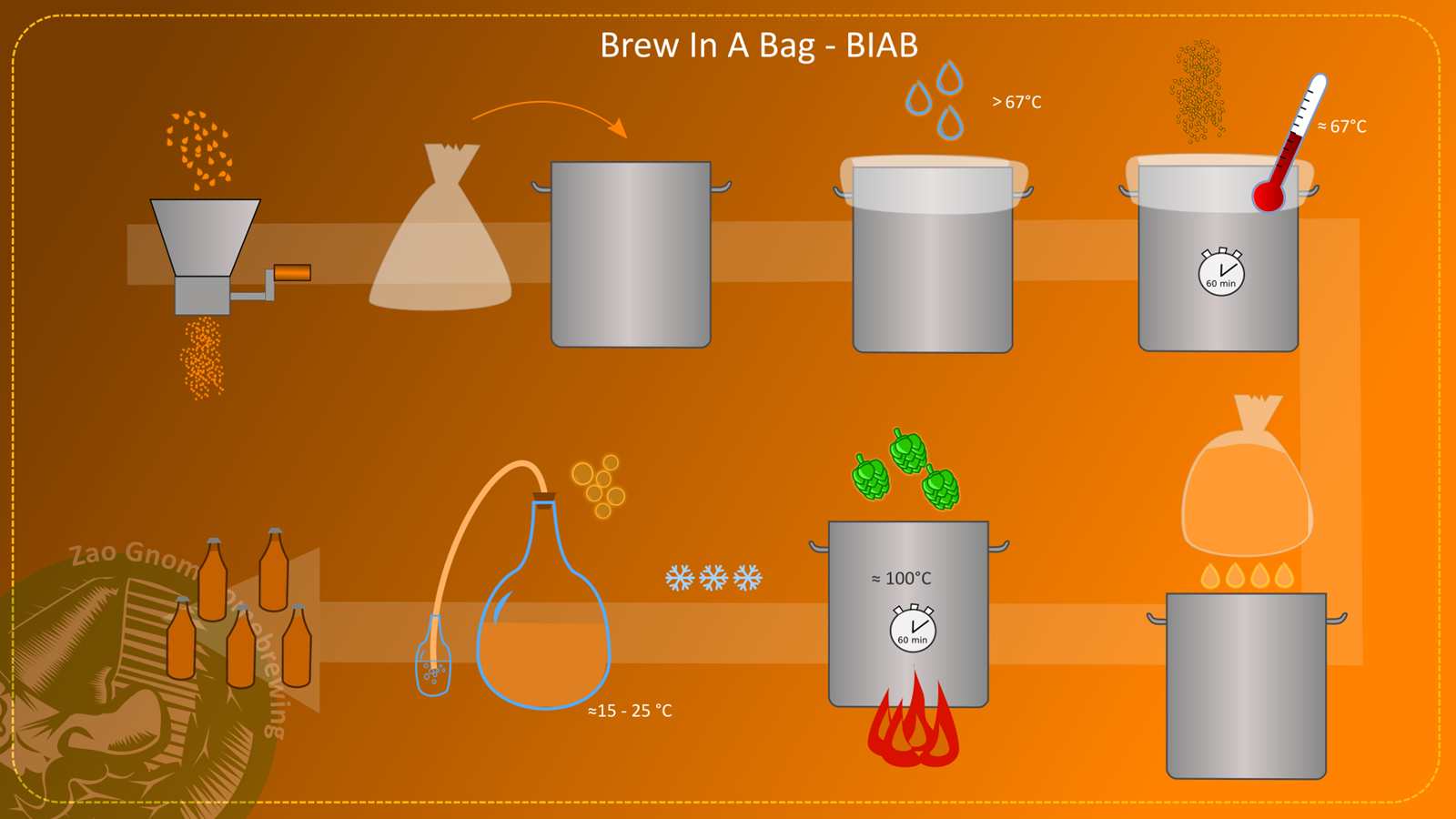 - Slijedi kuhanje, dodavanje hmelja, hlađenje, ubacivanje kvasca, fermentacija i flaširanje, o tome možete pročitati na drugim pod-stranicama na Zlom Gnomu.